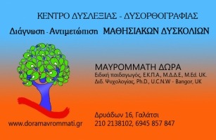 ΔΡ.ΨΥΧΟΛΟΓΙΑΣ , ΕΚΠΑΙΔΕΥΤΙΚΟΣ ΕΙΔΙΚΗΣ ΑΓΩΓΗΣ , M.E.D.PH.D. , ΕΔΕΙΔΙΚΕΥΣΗ ΣΤΗΝ ΔΥΣΛΕΞΙΑ ,ΣΥΜΒΟΥΛΕΥΤΙΚΗ , ΑΠΟΚΑΤΑΣΤΑΣΗ ΔΥΣΛΕΞΙΑΣ , ΔΕΧΕΤΑΙ ΜΕ ΡΑΝΤΕΒΟΥ